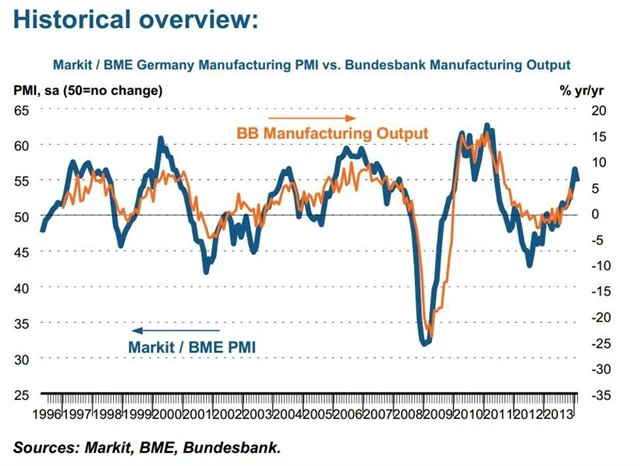 Index nákupních manažerů v sektoru služeb v Německu v únoru vyskočil na 32měsíční maximum 55,9 bodu z lednových 53,1 bodu. Kompozitní index dopadl ještě lépe, dosáhl 33měsíčního maxima na 56,4 bodu oproti lednovým 55,5 bodu.