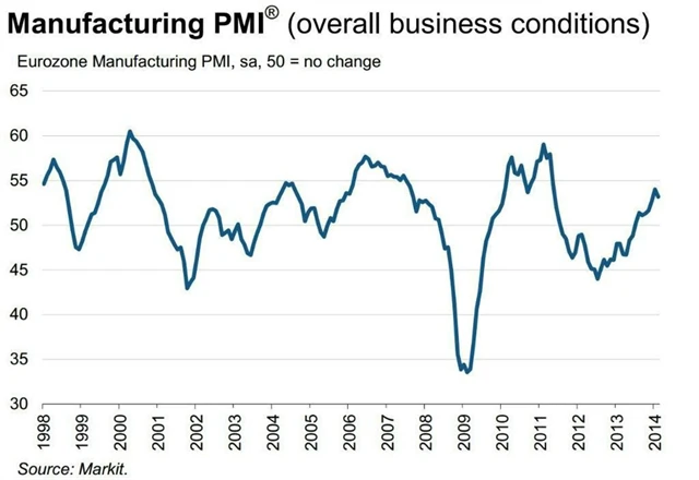 Expanze zpracovatelského sektoru v zemích eurozóny v únoru mírně zvolnila z lednového 32měsíčního maxima. Stále se však index nákupních manažerů nachází nad padesátibodovou hranicí, a to již osmý měsíc v řadě.