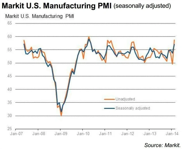 Zveřejněn byl i index společnosti Markit. Podle jejích údajů se index aktivity v průmyslu zvýšil v únoru o 3,4 bodu na 57,1 bodu a dosáhl maxima od května 2010.