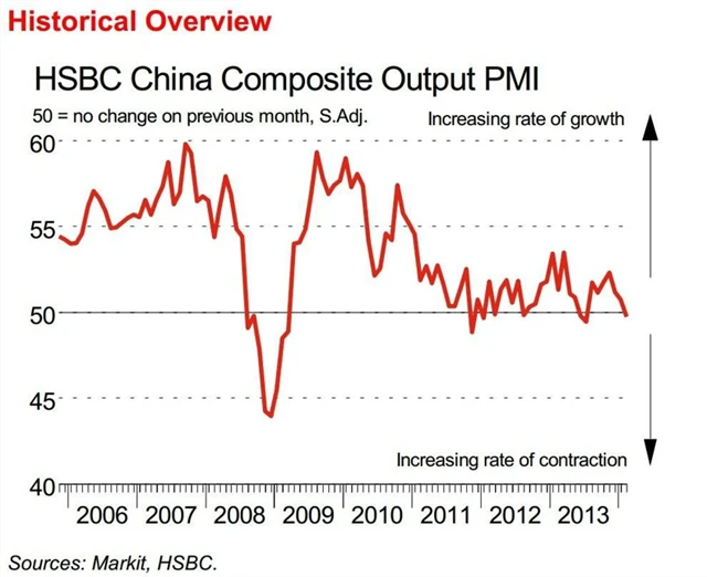 Kompozitní index nákupních manažerů se v Číně v únoru propadl pod hranici padesáti bodů, tedy do oblasti kontrakce, čímž přerušil předchozí šestiměsíční období růstu. Index spadl na 49,8 bodu z lednových 50,8 bodu. Naproti tomu index sledující pouze aktivitu v sektoru služeb ukázal rychlejší expanzi odvětví, když vzrostl na 51 bodů z lednových 50,7 bodu.