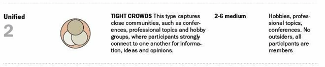Při propojené komunikaci (unified communication) mezi sebou diskutují příslušníci jedné skupiny, přičemž téma je dáno jejich společnými zájmy či profesním zaměřením. Výzkum takovéto skupiny označuje ze sevřené davy (tight crowds) a za jejich charakteristický rys označuje to, že do své struktury neumožňují přístup nikomu z vnějšího prostředí.