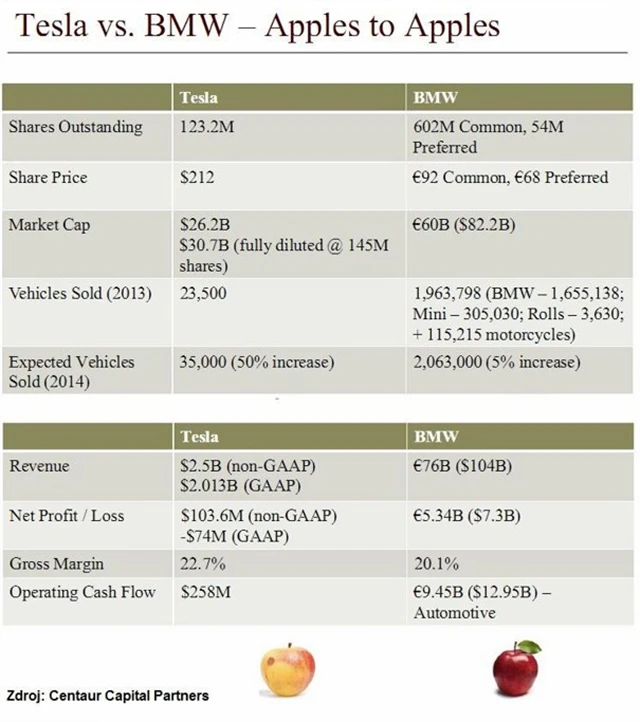 Zeke Ashton z Centaur Capital Partners na kongresu o hodnotovém investování v Las Vegas srovnal akcie společnosti Tesla Motors a BMW. Tyto akcie jsou podle něj na rozdílných stranách hodnotového spektra. V BMW přitom podle něj dříme skrytý potenciál.