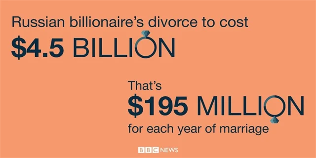 Nyní již bývalá manželka ruského oligarchy Dmitrije Rybolovlevova Jelena Rybolovlevová v posledních téměř 30 letech vydělávala pěkný balík peněz, aniž o tom věděla. Žena, která se za ruského podnikatele provdala v roce 1987, má podle švýcarského soudu v rámci rozvodového řízení získat více než 4 miliardy švýcarských franků (4,5 miliardy dolarů). Za každý rok manželství si tak Rybolovlevová přijde na slušných 195 milionů dolarů. A to za jediné "ano".