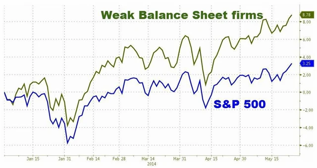 Čím horší finanční situace, tím lepší výkonnost na akciových trzích. I to by se dalo říci o veřejně obchodovaných amerických firmách. Akcie padesáti amerických společností s velmi slabou rozvahou v letošním roce posílily o necelých 9 %, od konce roku 2011 již zdražily dokonce takřka na dvojnásobek. Index S&P 500, který ve stejném období vzrostl pouze o 4 %, respektive 53 %, tak zůstává na vedlejší koleji. Co za tímto trendem stojí a jak dlouho ještě může pokračovat?