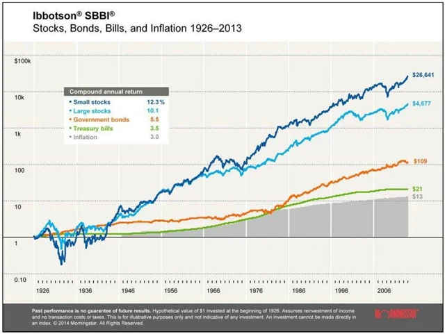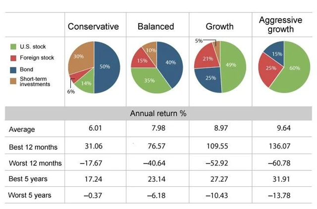 Rozdíl mezi extrémně konzervativní a vysoce agresivní investiční strategií není zanedbatelný. Mezi lety 1926 až 2013 byl průměrný roční zisk konzervativního investora zhruba 6 %, zatímco agresivně investující obchodník vydělal za každých dvanáct měsíců v průměru více než 9,6 %.