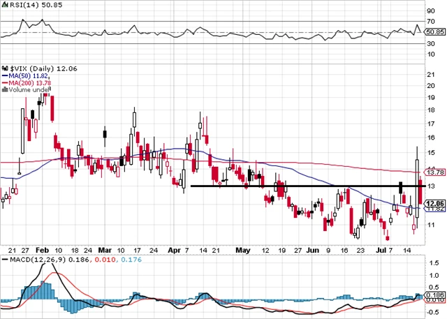 Index volatility VIX si během týdne hezky zaskotačil. Ve čtvrtek během dne vylétl o 40 %, páteční prosluněný den ho pro změnu poslal o 17 % níže. Je tedy opět pod hladinou 13 a pro akcie nadále vysílá býčí signál.