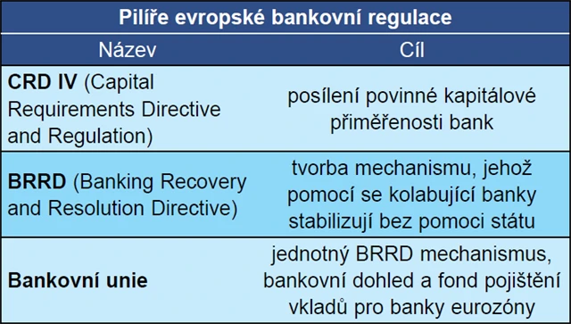 Jinými slovy, architektura nově vznikající bankovní regulace, tvořená zejména směrnicí pro kapitálovou přiměřenost (CRD IV), směrnicí pro ozdravné postupy a řešení krize úvěrových institucí a investičních podniků (BRRD) a směrnicemi týkajícími se bankovní unie, si mimo jiné klade za cíl zmenšení bankovního sektoru za účelem zefektivnění financování ekonomiky.