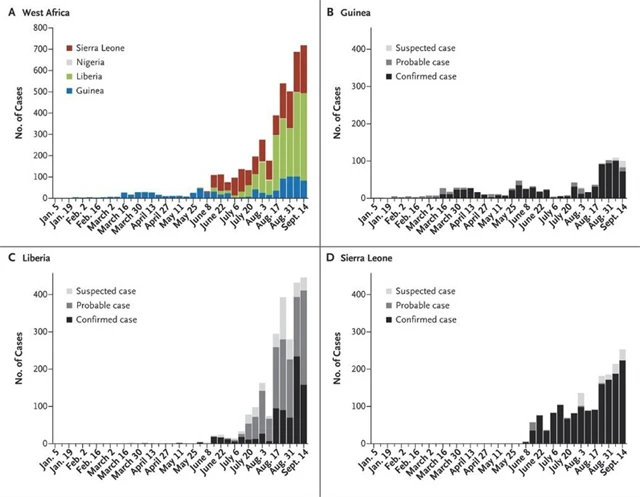 718: Počet nových případů výskytu eboly u lidí v Libérii, Sieře Leoně a Guinee za týden od 8. do 14. září.