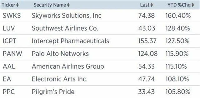 Aerolinky těžily z obnoveného zájmu investorů, v závěru roku jim pomáhal pokles cen ropy. American Airlines byla nejvýkonnější akcií v rámci indexu Nasdaq 100, Southwest Airlines pak dominovala v rámci S&P 500.