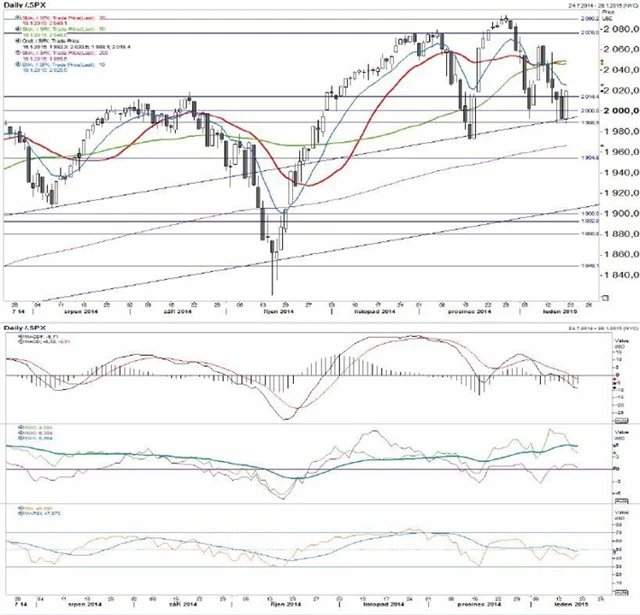 Technické indikátory jsou spíše negativní. Index v následujících dnech pravděpodobně opět otestuje podporu na 2 000 bodech.