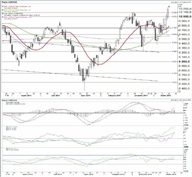 10 000 psychologická úroveň, 9 795 20denní klouzavý průměr, 9 693 50denní klouzavý průměr, 9 575 200denní klouzavý průměr, 9 000 psychologická úroveň.