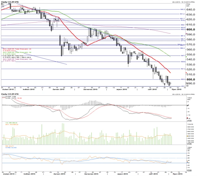 Komerční banka a ČEZ: České blue chips pohledem technické analýzy (6. 10. 2015)