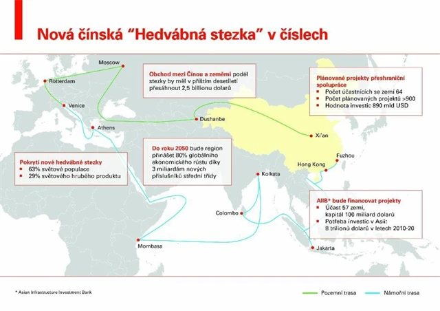 Podle odhadů ekonomů z HSBC celkové investice do projektů čínské hedvábné stezky překonají celkový objem českého hrubého domácího produktu za rok 2014. Jsou velkou příležitostí zejména pro české výrobní společnosti, které nabízejí zařízení pro dopravu, stavební služby, řízení infrastrukturních projektů a mnohé další.