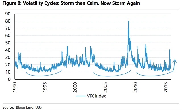 Dalším podstatným tématem je volatilita. Ta v posledních měsících vzrostla. A není se co divit, "nenormální" byla spíše její nízká úroveň v prvním pololetí. Stačí připomenout geopolitická rizika, zpomalování Číny, nejistotu okolo úrokových sazeb v USA, silný dolar působící negativně na hospodářské výsledky amerických firem a tak dále. "Mnozí investoři mají tu představu, že nárůst volatility znamená prakticky bezprostředně konec býčího trendu. Tak to ale není, vyšší kolísavost provází závěrečné fáze růstových období, obzvlášť v době, kdy Fed zvedá úroky," upozorňuje stratég.