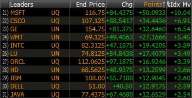 V roce 1999 si průměrná akcie připisovala 20,9 %, zatímco mediánová jen 0,09 %. V letošním roce je zatím průměr +1,5 % a medián +0,8 %. Velké zisky sice zkreslují průměr, ne však do takové míry jako v roce 1999, kdy vedení převzala hrstka technologických firem. V současnosti je 47 % indexu od začátku roku v mínusu, průměrná ztráta těchto akcií je 16,8 %. V roce 1999 bylo v mínusu 49,4 % akcií s průměrnou ztrátou 23 %.