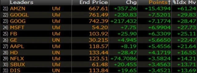 Jak je patrné z následujícího obrázku, dnes není situace na trhu ještě tak horká, konci 90. let se ale povážlivě přibližuje. Bez Amazonu a Googlu (tedy Alphabetu) by byl trh v mínusu, ani s nimi to ale zatím není žádná sláva.