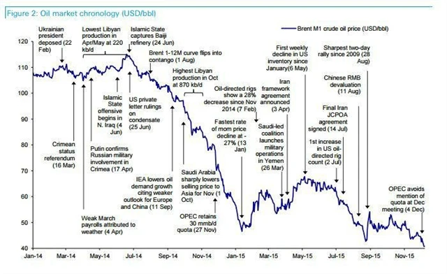 Dva roky na trhu s ropou v jediném grafu a výhled na rok 2016