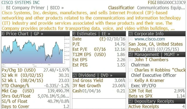 Cisco je v současnosti jednou z nejatraktivnějších hodnotových akcií na trhu. Z momentové akcie v 90. letech se již stal blue chip s předstihovým P/E pod 11.