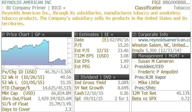 Firmě se daří zvyšovat výnosy záviděníhodným tempem. Analytici očekávají letos jejich růst o 25 % a o 18 % ve fiskálním roce 2016. Jen málo dividendových akcií se může pochlubit takovými tempy růstu jako Reynolds American, obzvlášť v tak regulovaném odvětví, jako je tabákový průmysl. Díky silným značkám v portfoliu, jako jsou Camel, Pall Mall nebo Winston, by měla Reynolds American zůstat velmi stabilní akcií i v následujících letech.