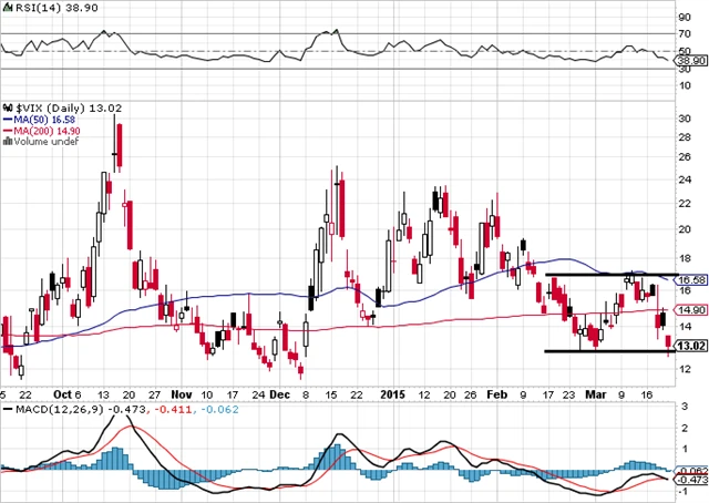 Index volatility VIX se propadl o 18 % a vrátil se k letošnímu minimu okolo 13. Uvidíme, zda bude kopírovat index S&P 500. Jeho rozpětí 2 040 až 2 120 by odpovídalo rozpětí 13 až 17 u indexu volatility. VIX nyní v každém případě vysílá pro akcie býčí signál.