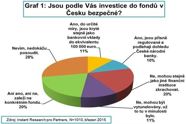 Pouze každý desátý Čech považuje investiční fondy za bezpečný a regulovaný nástroj. 11 % z nás si mylně myslí, že fondy podléhají zákonnému pojištění vkladů, třetina se stále ještě bojí krachů či tunelů. Zbytek si myslí, že záleží na konkrétním fondu, nebo zcela tápe.