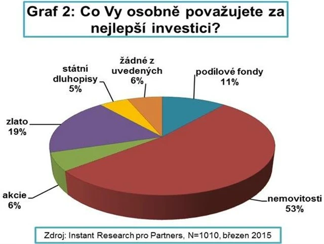 Že jsou Češi konzervativní investoři, je známá věc. Proto nepřekvapí, že na dotaz, kterou investici považují za nejlepší, tedy takovou, která v čase uchová hodnotu vložených peněz, zabezpečí je do budoucna a mají k ní důvěru, označilo 53 % respondentů aktuálního průzkumu nemovitost. Jen 11 % by se spolehlo na podílové fondy.