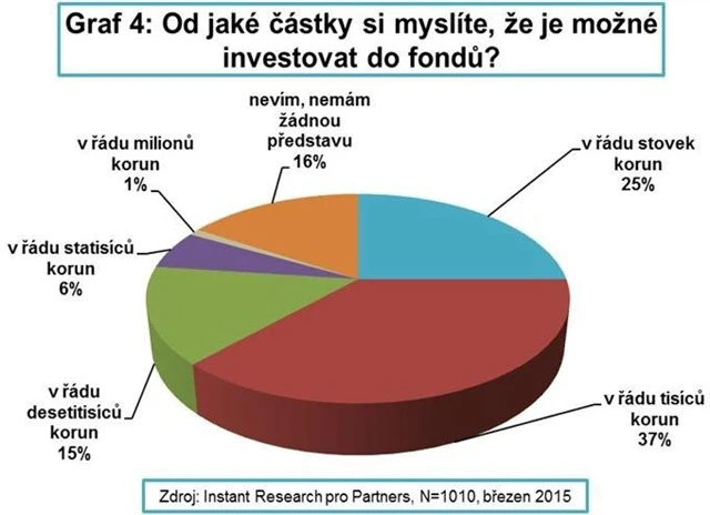 Na malou zkušenost s investováním poukazuje i to, že podstatná část lidí neví, že jsou podílové fondy dostupné v podstatě každému. Téměř 40 % dotázaných si myslí, že potřebná částka k investování jsou desítky či stovky tisíc, případně tuto částku neumí odhadnout (neví).