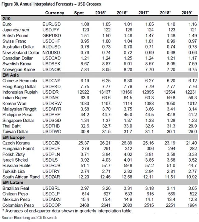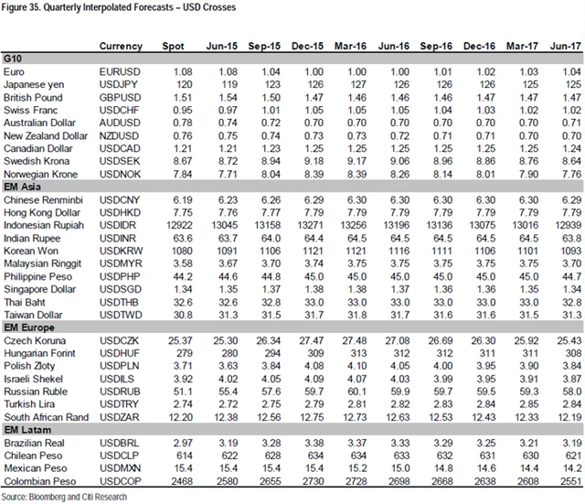 Aktualizovaný měnový výhled analytiků ze Citigroup.