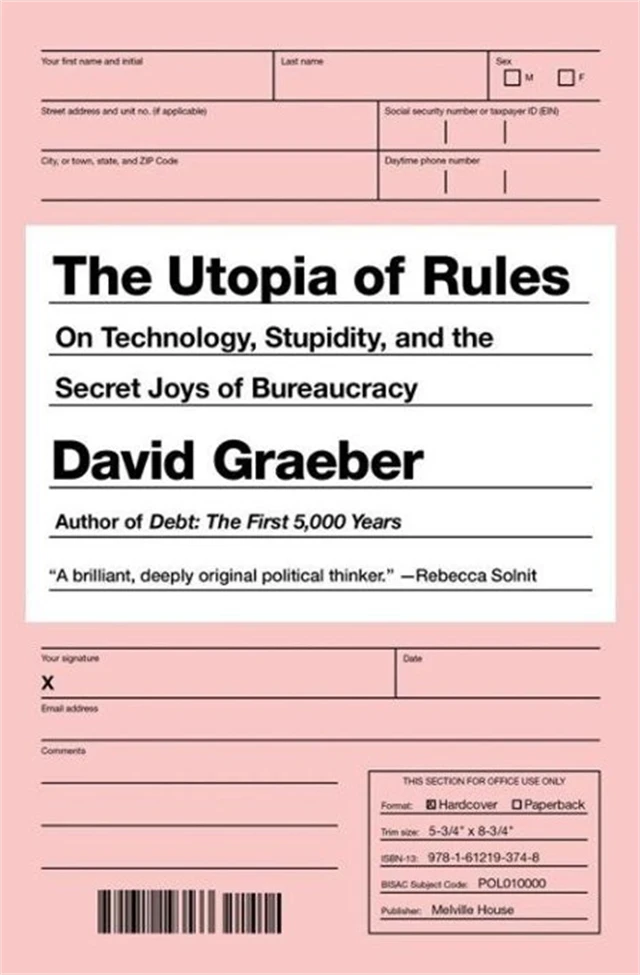 Jinde autor zase upozorňuje na ty druhy byrokracie, které kapitalismus ve skutečnosti pomáhá odstranit. Anarchistické buňky sice nemohou legálně vlastnit auto, jejich členové se ale mohou volně přepravovat pomocí taxíků nebo Uberu. Graeber nevěnuje dostatečnou pozornost tomu, že si kapitál už neobléká jen šedé sako bankéřů a pojišťováků, ale také triko a kecky technologických revolucionářů ze Silicon Valley. Ti hoši nenávidí byrokracii stejně jako Graeber, i když z opačných důvodů, a v The Utopia of Rules by si zasloužili více místa.