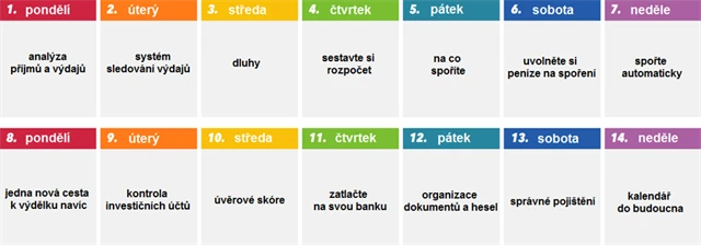 V uplynulých 13 dnech jsme si zopakovali základní úkoly týkající se osobních financí. 14. den je časem na sestavení finančního kalendáře s připomínkami jednotlivých úkonů, které jsme si osvojili. Byla by škoda, kdyby veškeré to úsilí přišlo vniveč.