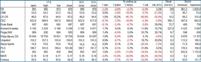 Pohled na výkon akcií obchodovaných na hlavním trhu pražské burzy je výmluvný. Index PX se drží v mírném zisku, index PX-TR (zohledňující i vyplacené dividendy, což byl a stále je významný důvod pro držení některých akcií v portfoliu) přidává 7-8 %.