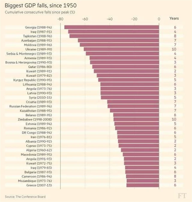 Stojí za zmínku, že ve 21. století na tom hůře než Řecko byly zatím jen Zimbabwe a aktuálně Sýrie. Ve druhé polovině 20. století ale nebyly výjimkou propady hospodářství o více než 50 %.