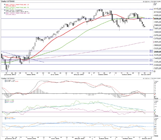 Technické indikátory odrážejí fakt, že akcie zůstávají pod prodejním tlakem. V následujících dnech bude důležité, zda index uhájí květnové minimum. Pokud ne, otevře se prostor pro pokles až k 372 bodům.