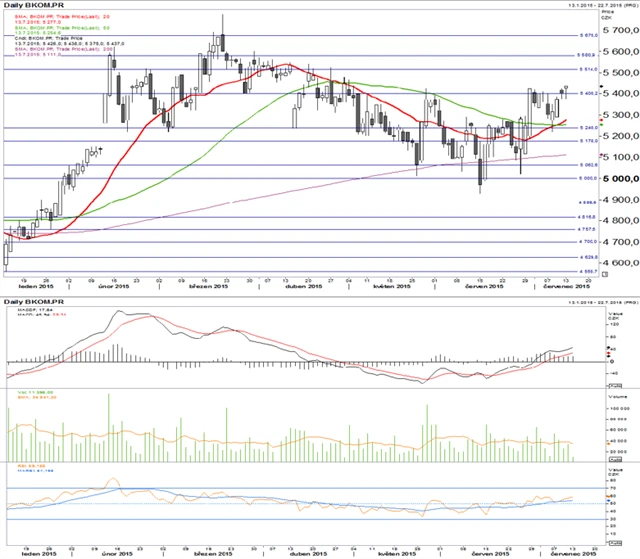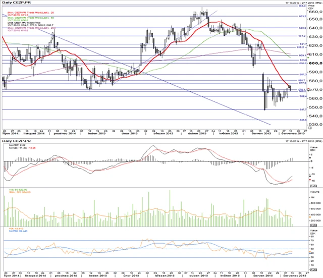 Komerční banka a ČEZ: České blue chips pohledem technické analýzy (14. 7. 2015)