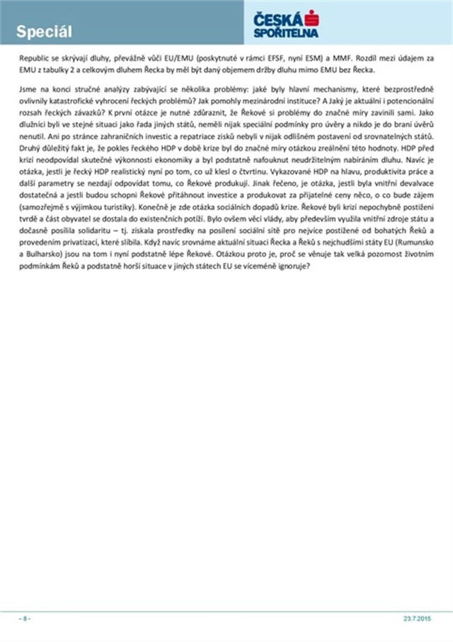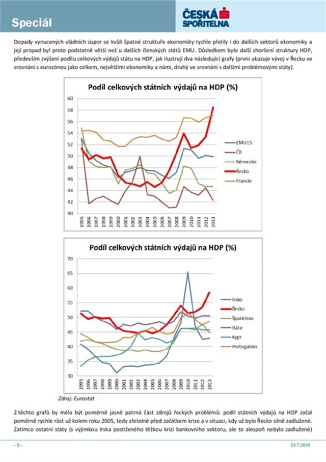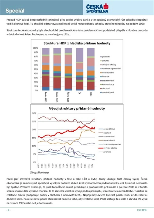 Řecko je aktuálně v centru pozornosti v mnoha směrech. Hodně se diskutuje o tom, jak se do současné situace dostalo a kdo ji zavinil. Odpověď na tyto otázky je nepochybně složitá, protože současná situace je důsledkem dlouhodobého vývoje, na kterém se podílela dlouhá řada různorodých faktorů. Hledat jednoduché odpovědi na složité otázky nemásmysl, to ale neznamená, že není možné ukázat základní mechanismy, které ke krizi významně přispěly.