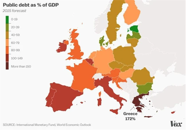 Řeckým problémem číslo jedna je jeho obří dluh. Zadlužení země v poměru k hrubému domácímu produktu (HDP) dosahuje více než 170 %, což je zdaleka nejvíce v Evropě. Veřejný dluh Řecka v poměru k velikosti jeho ekonomiky je dokonce druhý největší na světě po Japonsku, kde vládní dluh dosahuje zhruba 230 % HDP.