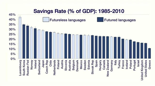 Keith Chen, behaviorální ekonom a profesor ekonomie na UCLA Anderson School of Management, byl fascinován rozdíly v míře úspor lidí v jednotlivých zemích a pokoušel se zjistit, z čeho tyto rozdíly pramení. Zaměřil se proto na 34 zemí z Organizace pro hospodářskou spolupráci a rozvoj (OECD) a porovnával různé jejich charakteristiky. Po rozsáhlém zkoumání došel k závěru, že jedním z klíčových faktorů je řeč, kterou obyvatelé země mluví.
