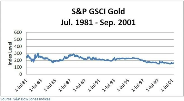 V polovině roku 1981 americký prezident Ronald Reagan ustanovil komisi, která odmítla navrácení USA ke zlatému standardu. Fed zvýšil úrokové sazby na 20 % a inflace klesala. To vyvolalo recesi. Investoři do zlata ztratili polovinu hodnoty svých aktiv a ptali se sami sebe, zda je již zlato na cenovém dně.