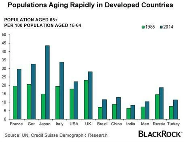 V současném světě investic spekulace o budoucím vývoji úrokových sazeb zastiňují důležité trendy probíhající v pozadí. Investoři snažící se zorientovat se ve zčeřených vodách finančních trhů ignorují jeden zásadní strukturální fenomén, a sice demografii. Stárnutí obyvatelstva přitom může "pokroutit" finanční trh daleko výrazněji než třeba živelné technologické inovace. Rick Rieder, výkonný ředitel BlackRock, vysvětluje, proč by investoři neměli tento problém přehlížet.