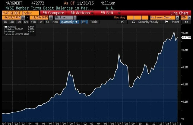 Americký akciový trh byl přitom po celý rok 2015 poblíž maxim, v posledních dnech zažívá druhou korekci během pěti měsíců. Takzvaný margin debt v USA (objem půjček členů burzy na nákupy akcií) jako podíl na HDP přitom nedávno dosáhl historického maxima 2,87 %. Investoři tedy mají důvod být nervózní.