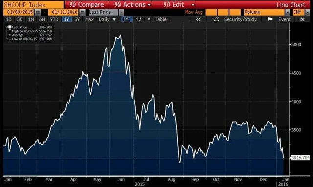 Čínský akciový trh měl za sebou už v roce 2015 divokou jízdu. Vláda se pokusila podpořit akciový trh podporou maržových úvěrů. Když trh zhodnotil, vláda úvěry omezila a trh z maxima spadl o 40 %. Výprodeje pokračují i na začátku roku 2016, trh zatím marně hledá důvěru v kroky čínské centrální banky a v růst ekonomiky Číny.