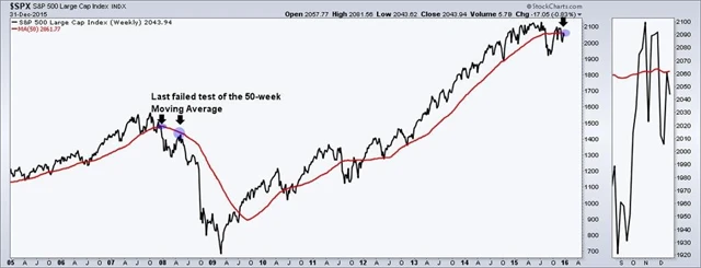 Když přijde na analýzu dění na akciových trzích, neměla by být pozornost soustředěna pouze na vývoj samotných akciových indexů, ale i na momentum a hloubku trendu. Andrew Thrasher, portfoliomanažer z Financial Enhancement Group, na začátku ledna upozornil, že letos poprvé od let 2007 a 2008 index S&P 500 při testování rezistence v podobě 50týdenního klouzavého průměru tuto technicky důležitou úroveň nedokázal zespodu prorazit.