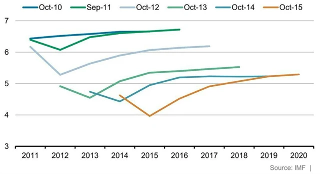 Ekonomové, včetně těch z Mezinárodního měnového fondu a Světové banky, museli v průběhu posledních několika let snížit své odhady růstu pro rozvíjející se trhy (EM).