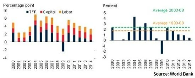 Vlády řady zemí nevyužily v časech hojnosti a levného dluhu možnost přetransformovat své ekonomiky tak, aby se staly konkurenceschopnějšími, a nezvýšily jejich růstovou kapacitu. Růst na základě vyšší efektivity, kterému se říká také "souhrnná produktivita faktorů", se na rozvíjejících se trzích zmenšuje.