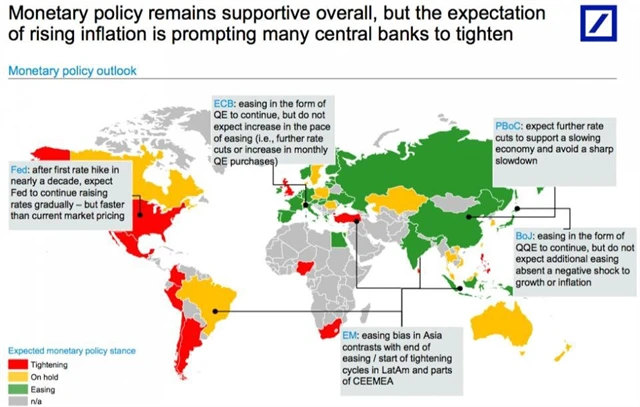 Ačkoli ceny komodit jsou stále nízké a ropa je na mnohaletých minimech, některé měnové autority (především v Latinské Americe) začínají posouvat sazby výše, protože se obávají nárůstu inflace. Ten v řadě případů souvisí s oslabováním měn, které trpí odlivem kapitálu z těchto zemí v důsledku posilování dolaru a očekávání atraktivnějších úroků v "bezpečné" americké ekonomice.