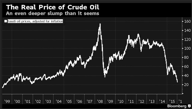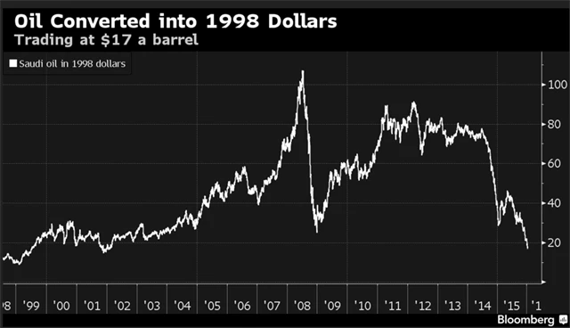 Ceny saúdskoarabské ropy by nebyly ani 17 USD za barel, kdyby se převedly na dolary z roku 1998 (rok, kdy ceny ropy klesly nejníže od 80. let 20. století).