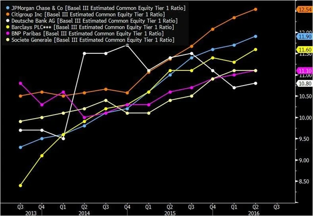 Ředitel banky John Cryan se vyjádřil, že "kapitál v současné době není pro banku problém", hodnota Tier 1 (původní, jádrový kapitál) u Deutsche Bank je však nižší než u jejích evropských konkurentů. Ještě v roce 2014 na tom byla banka jednoznačně nejlépe.