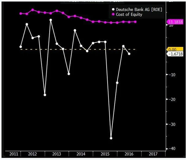 Banka minulý měsíc prohlásila, že se bude snažit posílit svůj pákový poměr na 5 % do konce roku 2020, ale bude to problém. Rentabilita vlastního kapitálu (ROE) bude letos podle očekávání negativní, i když náklady na vlastní kapitál klesají.