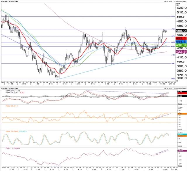 Komerční banka a ČEZ: České blue chips pohledem technické analýzy (26. 10. 2016)