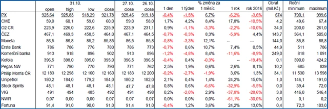Pražská burza je populární především mezi českými investory a velkými institucionálními hráči, kteří se zaměřují na středoevropský region. Její největší devizou jsou dividendy, slabinou naopak likvidita a počet zajímavých titulů. V říjnu ale index PX nechal za sebou většinu konkurence. Jak jsou na tom nejobchodovanější tituly z parketu BCPP v týdenním, měsíčním a ročním horizontu a také od začátku roku 2016? A jaká doporučení na jednotlivé akcie drží analytici z České spořitelny?